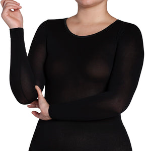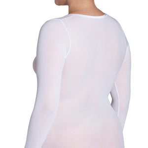 La Chemisette Monarch está diseñada sin costuras para una sensación suave y cómoda en la piel. Su corte liso y escote redondo con borde de satín brindan un toque elegante. Con mangas largas y microfibra abriga sin abultar. Delicada y confortable, mantendrá tu estilo y comodidad.