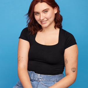 Su diseño sin costuras y doble tela te brindan comodidad, suavidad y la seguridad de que no transluce nada, mientras que su escote cuadrado y manga corta le dan un toque perfecto para esta temporada.
