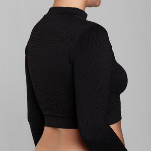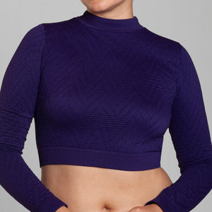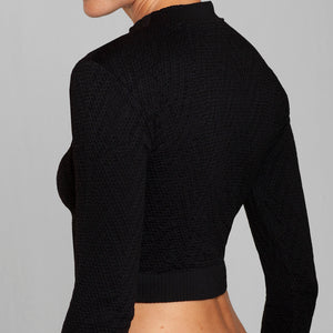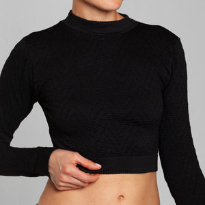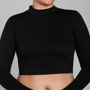 Crop Top seamless Lasst, confeccionado en microfibra premium con tejido texturizado y diseño exclusivo. Su calce perfecto abraza la silueta de forma cómoda y favorecedora. Talla única, elasticada y adaptable. Incorpora cuello alto y mangas largas, logrando un look moderno, sofisticado y ultra versátil, ideal para elevar cualquier outfit de día o de noche.