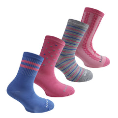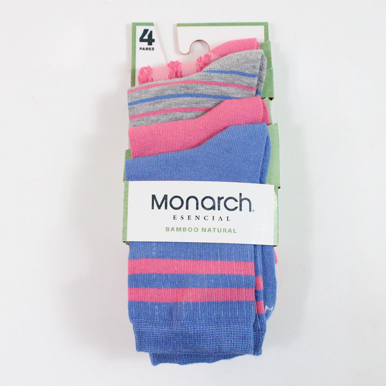 Cuatripack de calcetines largos 3/4 confeccionados en fibra de bamboo, reconocida por su suavidad, frescura y alta respirabilidad. Su diseño de puntos aporta un toque sutil de estilo, ideal para acompañar el uso diario con comodidad durante toda la jornada.