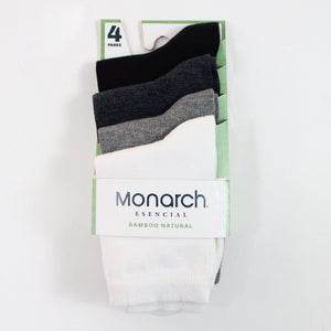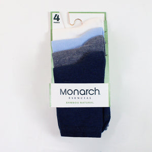 Cuatripack de calcetines largos 3/4 confeccionados en fibra de bamboo, reconocida por su suavidad, frescura y alta respirabilidad. Su diseño de puntos aporta un toque sutil de estilo, ideal para acompañar el uso diario con comodidad durante toda la jornada.