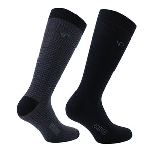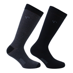 El Pack 2 Pares Calcetín Bamboo Pie de Poule Largo Americano de Peruggi combina diseño clásico y sofisticación para el uso diario. Su patrón pie de poule aporta un estilo elegante y atemporal, ideal para complementar looks formales o de oficina, mientras su largo americano (a media pierna) ofrece mayor cobertura y un ajuste cómodo que se mantiene firme durante toda la jornada.