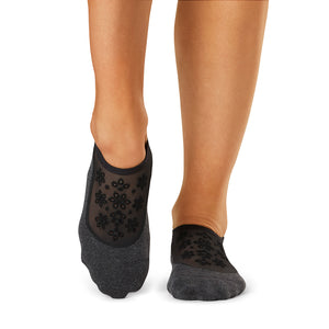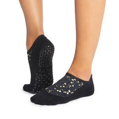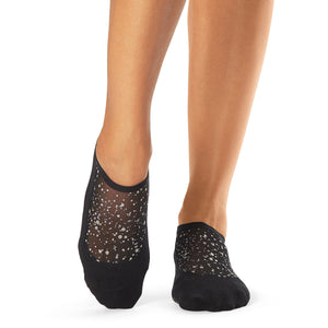 Características técnicas: Planta antideslizante / Tejido con algodón orgánico /Lengüenta en talón que protege del roce. Su diseño abraza justo debajo del tobillo, mientras da soporte en el empeine a través de dos bandas. El patrón antideslizante de la planta hace que te puedas mover de manera segura a través de tus clases de Barra, Pilates y Yoga.