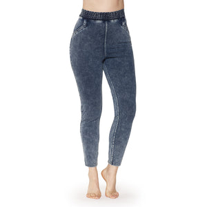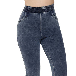 Calza pantalón efecto Jeans con hermoso detalle de bolsillos traseros.