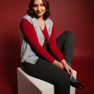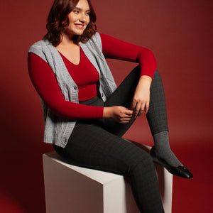Calza pantalón full opaca, hermoso estampado cuadrillé, cintura alta.