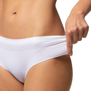 Calzón en suave microfibra sin costuras, que ofrece total libertad de movimientos. Diseñado para ser cómodo y práctico, está equipado con fibras bacteriostáticas y áreas anatómicas y funcionales con el hilo de control de olores Q-SKIN®. La cintura elástica está hecha de fibra LYCRA® y hace que el ajuste sea adaptable sin apretar. Ideal para la actividad diaria como una verdadera segunda piel.