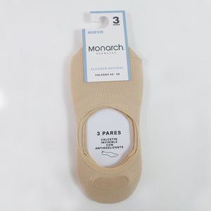Pack de 3 calcetines invisibles confeccionados en algodón suave y respirable, ideales para un look discreto sin renunciar a la comodidad. Su diseño de corte bajo permite que no se vean con zapatillas o calzado casual, manteniendo un ajuste cómodo y seguro.