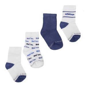 Estos calcetines Monarch ofrecen comodidad y suavidad para tu bebé gracias a su tejido de fibra de bamboo, una fibra termorreguladora y antimicótica. Con un largo 2/4 y una hermosa paleta de colores, este pack de 4 pares con hermosos diseños será un imprescindible en el closet de tu pequeño.