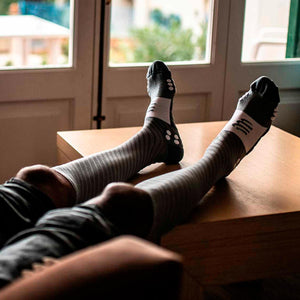 El calcetín de compresión negro con clase también puede llevarse antes de la actividad para favorecer la circulación sanguínea y preparar los músculos y la mente para el esfuerzo.