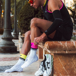 Calcetín de media pantorrilla de segunda piel de alta gama que combina máxima ventilación y ligereza con compresión graduada para un máximo rendimiento en carreras.