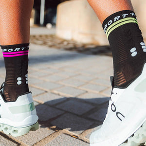 Calcetín para correr de corte redondo con fibras de PTFE integradas y banda antideslizante para evitar el sobrecalentamiento de la piel y las ampollas durante carreras en ruta más largas.