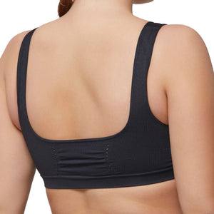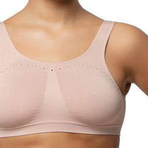 El sostén de tamaño cómodo está equipado con un sistema especial de soporte para el busto, la banda elástica está hecha de fibra LYCRA® que no aprieta y no marca ofreciendo un ajuste único y cómodo.