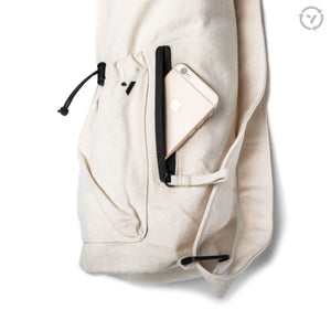 Hecho de material 100 % algodón en el exterior y forro 100 % reciclado en el interior, puedes estar tranquilo sabiendo que elegiste un bolso de yoga ecológica.