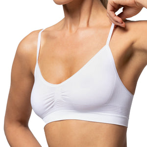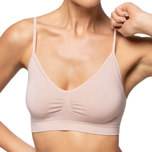 Sostén de sujetadores delgados y delicados en suave microfibra sin costuras, con acabados planos y áreas anatómicas y funcionales con el hilo de control de olores Q-SKIN®. Cómodo y ligero, cuenta con una banda elástica de fibra LYCRA® y ofrece un ajuste único y cómodo. Ideal para la actividad diaria como una verdadera segunda piel.