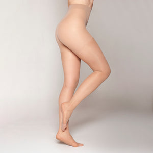 Panty elasticada 40 den. Ideal para días más fríos o personas que necesiten una mejor compresión para su día a día. Cuadro con demarcación, control de abdomen. pierna transparente y puntera reforzada. Diseño y fabricación Chilena.