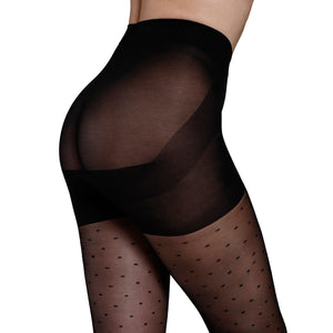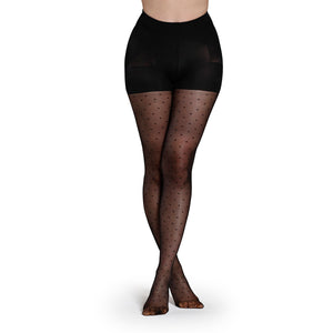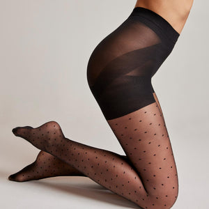 Disfruta de una figura más elevada con nuestro Panty con diseño de puntitos y cuadro push up, que realza tus glúteos de manera sutil y natural. Su puntera con diseño y tejido transparente lo hacen perfecto para cualquier ocasión sin perder la comodidad. ¡Sin brillo para un look discreto y elegante!