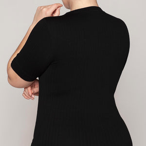 Su confección seamless realza la silueta y la convierte en una prenda versátil, ideal para combinar en outfits casuales o más elegantes. Composición: 80% microfibra, 20% spandex.