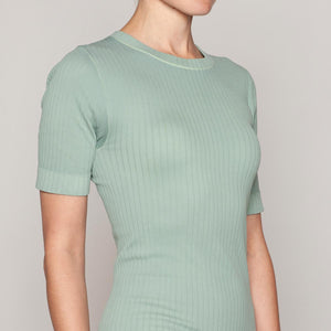 Polera de microfibra sin costuras, con cuello tipo polo y textura acanalada ultra suave.