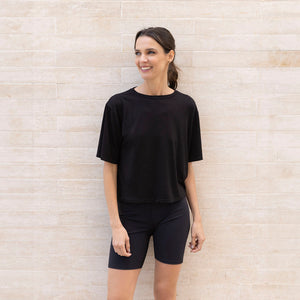 Polera Manga Corta Monarch. Su ajuste relajado y suave tejido te mantendrán siempre favorecida y fresca, tanto en el gym como fuera de él. Con cuello redondo, dobladillo alto y bajo, ¡es perfecta para cualquier actividad sudorosa!