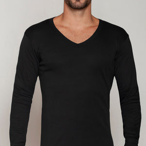 Camiseta interior de diseño clásico con cuello en V y mangas largas, pensada para acompañarte cómodamente todos los días. Su escote permite usarla bajo camisas sin que se note, logrando un look discreto y prolijo. Confeccionada en algodón suave y respirable, se adapta al cuerpo brindando calidez ligera y confort durante todo el día. Un básico versátil y funcional para cualquier temporada.