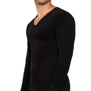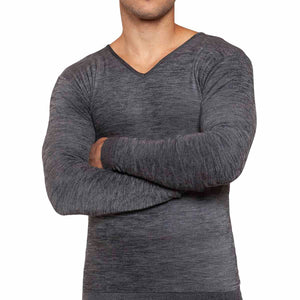 Camiseta térmica cuello en V manga larga. Con propiedades térmicas ideales para mantener el calor.