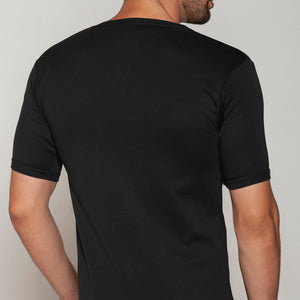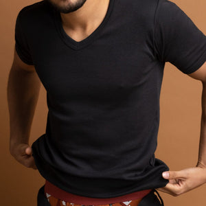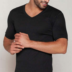 Camiseta cuello en V, manga corta. Ideal para usar con camisas para que no se vea. Prenda clásica de uso diario, fabricada con suave algodón.