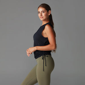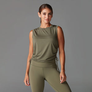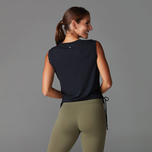 Polera con hermoso detalle lateral fruncido.Lazos laterales ajustables para conseguir el largo perfecto.