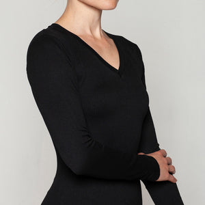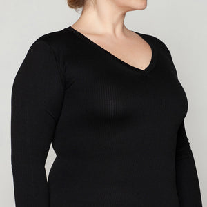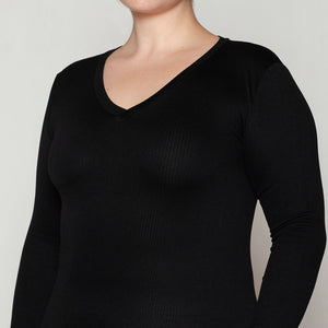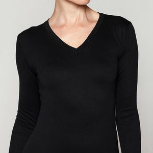 La Polera Esencial Acanalado Escote V es una prenda ideal para el invierno. Con su tejido acanalado y sin costuras, esta polera brinda comodidad y abrigo. Su suave microfibra y versatilidad la convierten en un básico esencial. Disfruta de su escote en V y mantente cálido con estilo.