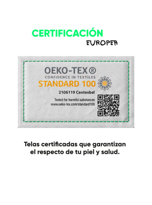 Nuestros productos tienen certificación europea Oeko-Tex que garantiza que todas las telas son respetuosas de tu piel.