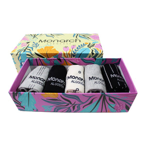 Sorprende a tus seres queridos con el 5-Pack de Calcetines Monarch, largo hasta el tobillo. La caja incluye cuatro pares de calcetines de fibra natural de Algodón que son ideales para cualquier temporada.