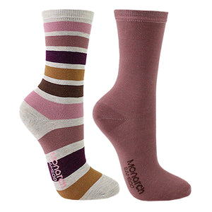 Monarch - 2 Pares Calcetín Bamboo Diseño Franjas Loft Largo 3/4