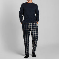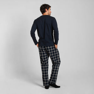 El pantalón con diseño a cuadros incorpora prácticos bolsillos laterales y un calce cómodo que permite total libertad de movimiento. Su estilo tradicional lo convierte en una opción versátil y sofisticada para disfrutar en casa.
