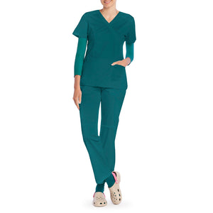 Cuenta con escote en V, manga sobre la muñeca que brinda mayor libertad de movimiento y comodidad durante la jornada laboral. Además, su confección sin costuras entrega un ajuste más confortable y una sensación suave al contacto con la piel.